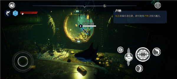 4、如果要快速寻找猎物目标,点击屏幕任意位置即可使用“声呐”,方便进行捕猎。