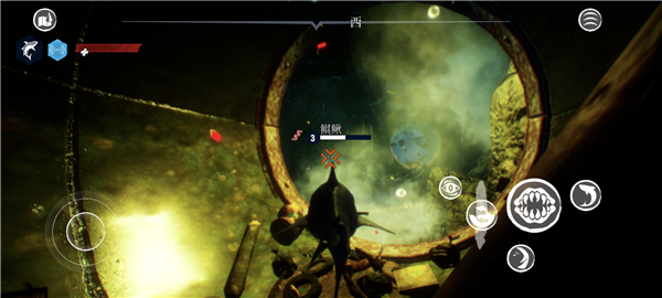 3、通过摇杆即可控制食人鲨的移动方向,不过感觉移动端的适配优化不是很好,操作不是很丝滑,有些生硬。