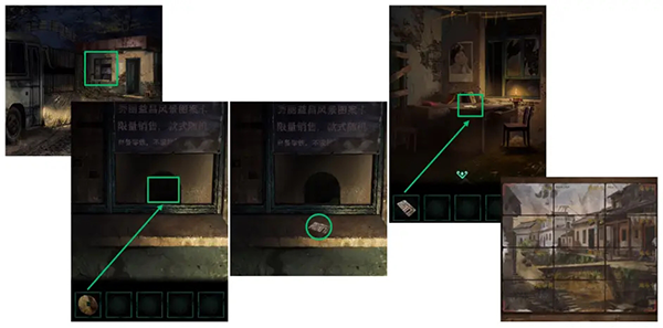 7、点击值班室的柜台,【纸钱】放到柜台上,拿到【公交卡】。将【公交卡】放到桌上的公交卡堆里,完成拼图。