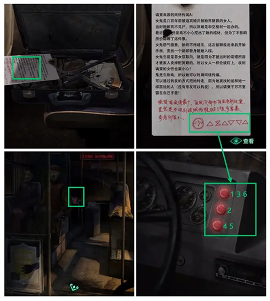 1、车门缝里拿到【旧时代纸币】,投入到钱箱里,(后视镜高能)根据电子屏上的文字提示,打开女纸人手里的箱子。