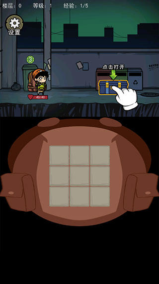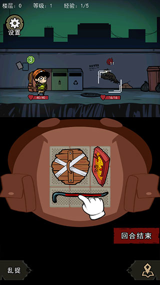 8、当遇到敌人时,可以打开背包,使用武器进行战斗,角色头顶的数字表示当前剩余的体力,每次使用道具都会减少体力,体力为0时则不能战斗,进入敌人发动攻击回合。