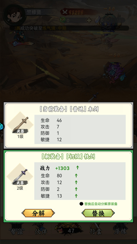 3、消灭怪物会掉落装备,穿戴后可提升战力;