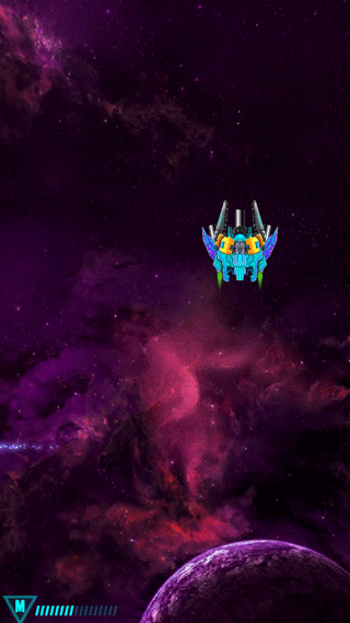 1、打开银河袭击独立行动最新版游戏,触碰屏幕控制飞船左右移动