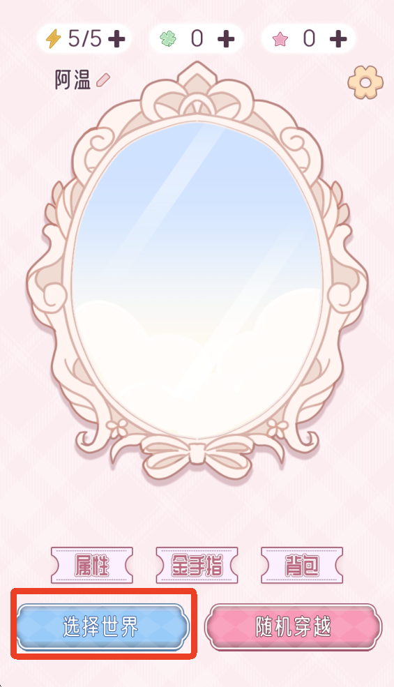 1、取完名字后,我们点击下方的选择世界,如果你想体验未知的冒险,可以点击随机世界。