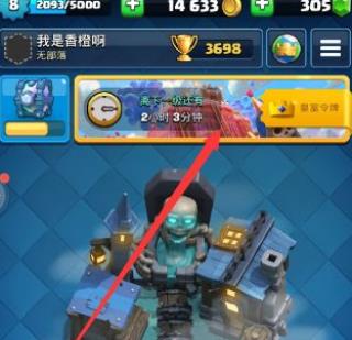 1、首先,打开手机上的皇室战争游戏,进入到首页对战界面,点击最上方的皇室令牌入口。