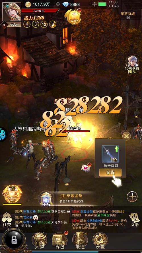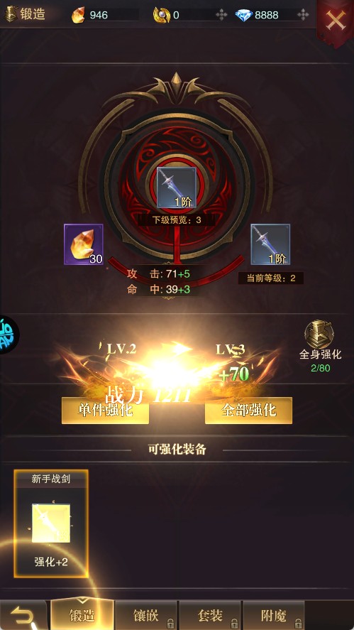 强化装备:通过收集材料对装备进行强化,提升装备属性,从而提高角色战力。战力提升后,玩家在挑战副本、击杀怪物时会更加轻松,能够更快地获取经验。