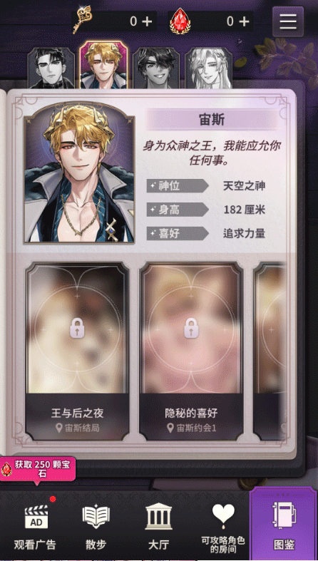 神域之恋是一款十分有意思的女性向互动游戏,以“古希腊神话”为背景进行塑造,将冥王哈迪斯、众神之王宙斯、海神波塞冬以及爱神阿芙罗狄忒四个角色以二次元的方式进行了展现,而你则将扮演其中的女主,可以有选择的与他们进行交流、互动,互动的过程中会面临着很多的选择,你的每一个选择都可能会增加或减少彼此之间的“粉红泡泡”,那最终是爱情、和谐还是仇视呢?就要看玩家自己的发挥了,有兴趣的小伙伴可在本页面中直接进行下载哦。