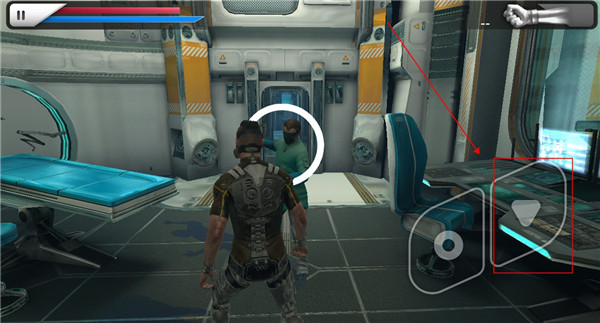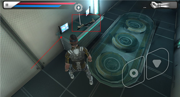 7、打开大门后我们进入其中,一直向前走我们可以拿到我们的第一把武器,一个机械腿,点击右上角即可切换武器