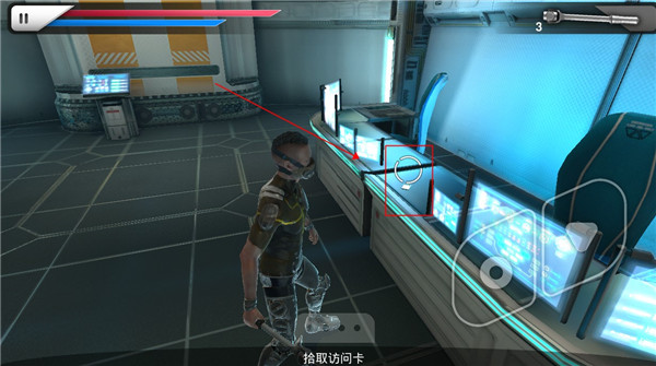 9、进入其中后一路向前拿到访问卡,打开电梯门,并跳进去