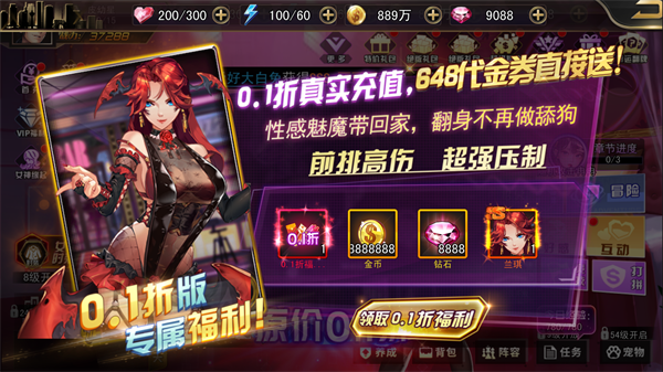 1、进入游戏内就可以享受到0.1折开局福利。