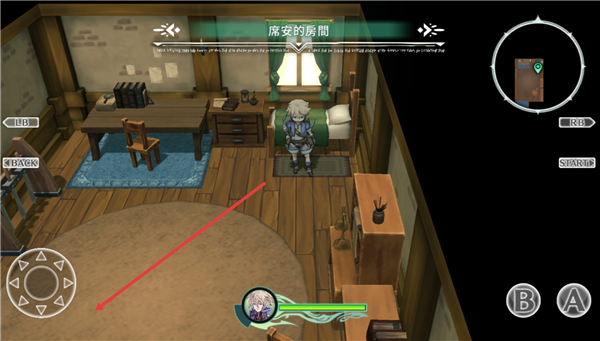 1、进入圣塔神记游戏中,过完剧情来到席安的房间,先往门口走,会触发剧情。
