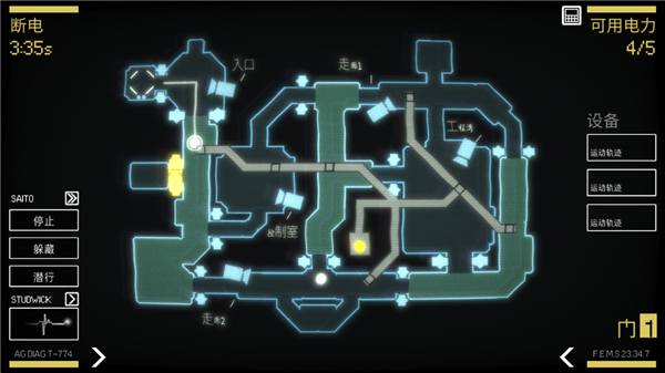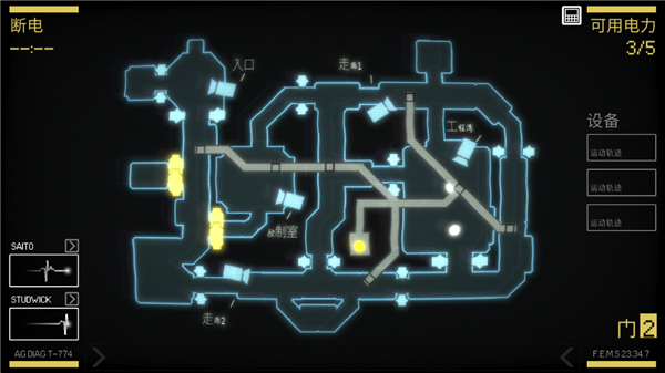 6、关闭一个装置将消耗电力,开启后可恢复最多拥有5个单力,地图中黄色就是已经关闭的装置。