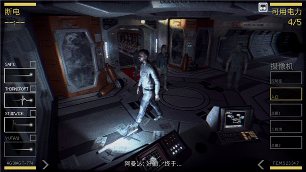 5、点击查看整个空间站,可以查看全部摄像头以及控制装置,与人员进行沟通帮助它们开启装置,请注意摄像头情况。