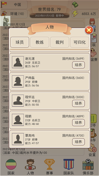 2、人物方面,比如说:球员、教练、裁判等,我们可以自由培养。