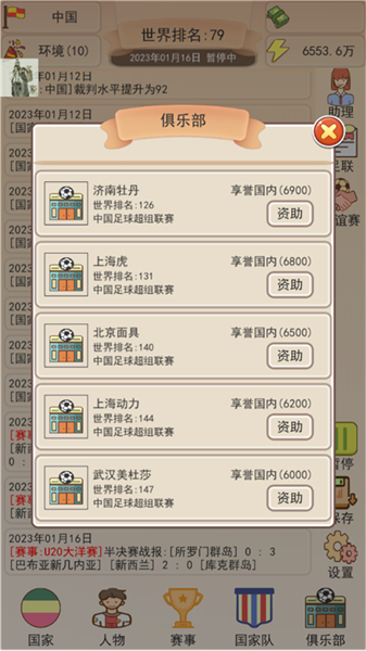 5、在俱乐部界面下,我们也可以随心所欲的资助不同的俱乐部,还是一句话有钱。