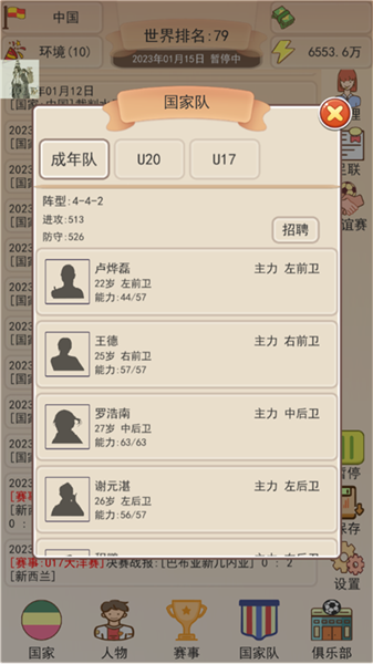 4、在国家队界面下,我们可以自由招牌各种球员,就是因为财大气粗。