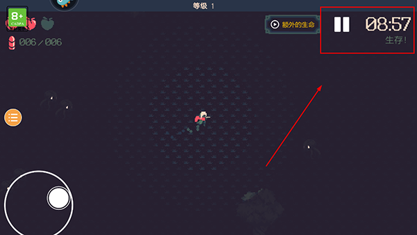 5、游戏界面左上方为游戏时间,在倒计时20分钟内玩家角色没有死亡,即为玩家胜利。