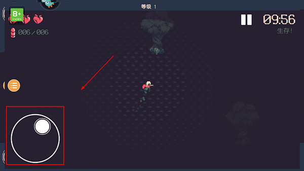 3、游戏界面左下角轮盘为控制射击方向;