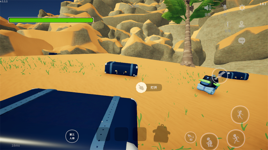 3、在屏幕左上角是你的体力条,你的体力会因为携带的物品重量、受伤、饥饿等因素降低,使用道具可以恢复体力。