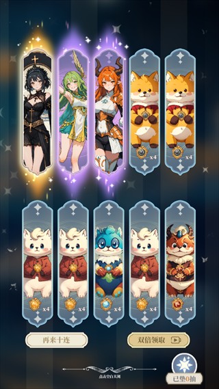 1、打开二次元氪金抽卡氪金模拟器2,直接送你十次抽奖机会!点击召唤抽卡吧!