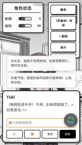 4.所有行为表现,都将实时影响Yuki的好感度数值与当下情绪状态。