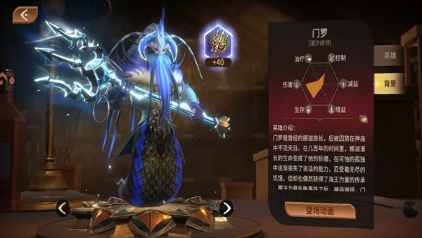 门罗是曾经的娜迦族长,后被囚禁在神庙中不见天日。在几百年的时间里,娜迦漫长的生命变成了他的折磨,在可怕的孤独中逐渐丧失了说话的能力,忍受着无尽的饥饿,但却也偶然获得了海王力量的传承。