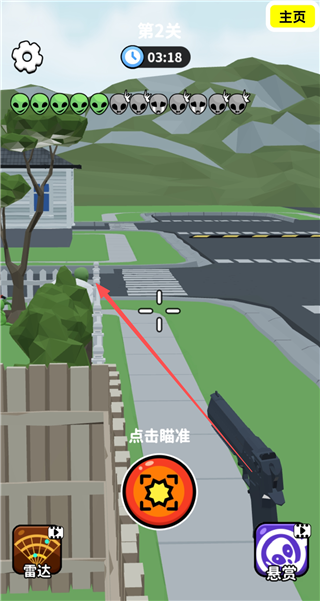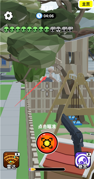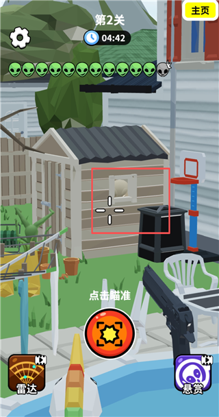 射击外星人全称:找到外星人射击外星人,是一款卡通风格的狙击射击类游戏,玩法上有一点像找茬游戏,即通过狙击枪的瞄准镜在不同的地图中进行外星人的查找,待看到时,利用自己手中的枪械将其击毙,关卡内所有的外星人都被消灭的时候即可通过当前的关卡,进入到全新的关卡当中。游戏还精心设计了多个不同的游玩场景,如:商业街、公园、太空基地等,让你拥有更多的游戏乐趣,感兴趣的小伙伴可以进入其中游玩一下哦。