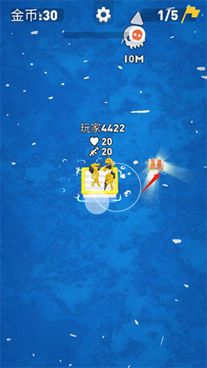 3、船员招募:海面上漂浮着救生圈,里面困着火柴人船员,玩家需要及时解救他们,让他们加入自己的队伍。