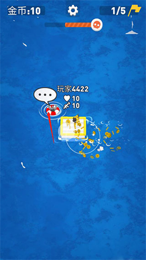 5、资源管理:收集海面上的宝箱和金币,获取各种炫酷皮肤和增强道具,合理分配资源提升实力。