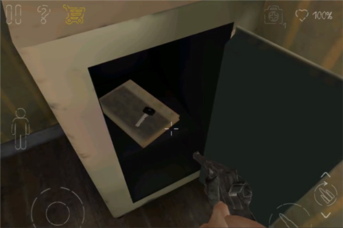 7、点击气球回到正常环境会看到一个保险柜,输入刚才的数字就能打开,拿起钥匙之后点击气球就能返回二楼,玩家注意要多捡一点急救包,后面会有超大的怪物。