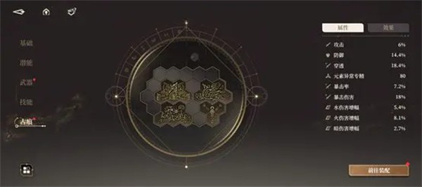 古痕可以理解为身体附魔,可以为角色提供的属性加成是以百分比形式展现,并伴随着不同元素伤害的增幅与元素异常专精,可以从基础面板查看有古痕加成后的各项数值。