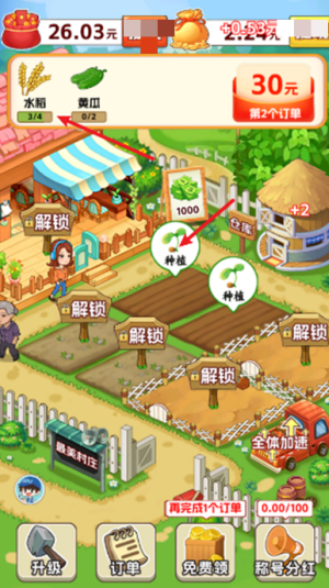1、下载好游戏,进入到游戏中,观察最上方的订单列表,在这里可以看到订单所需的作物,然后点击空地开始种植。