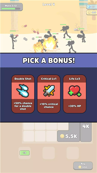 3、带领你的火柴人开启超有趣的进化之旅,从最原始的穴居人战士逐步进化,变身强大的恐龙战士,能解锁更多意想不到的高阶形态,见证战力一路飙升。