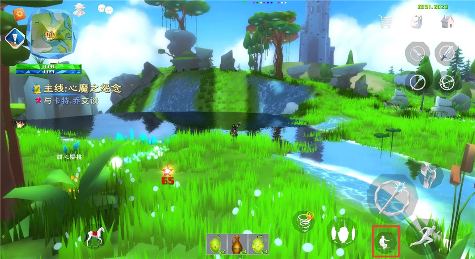 2、到河边面向河水,攻击键下方会出现钓鱼标志。