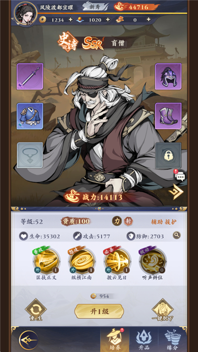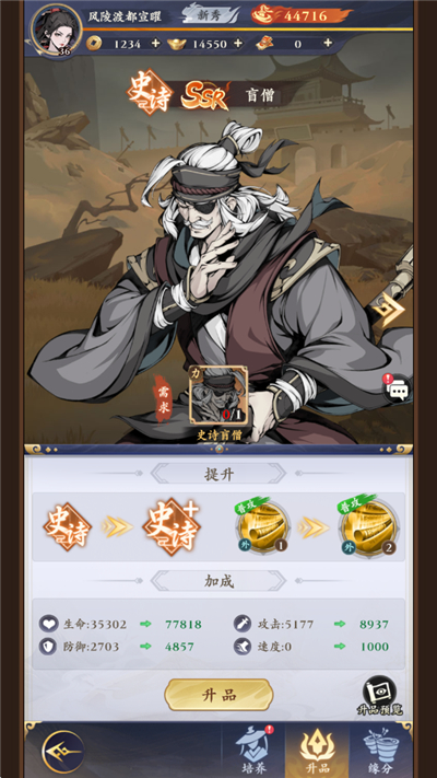 2、升品可提升侠客基础属性、资质。