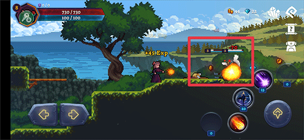 2、当遇到敌人时,灵活运用移动、跳跃、技能等按钮将其击杀即可,击杀后的敌人将转化为金币和钻石