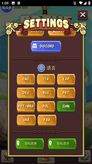 1、下载打开游戏后需要等待游戏加载一段时间,游戏默认语言是中文如果玩家们需要修改其他语言只需要点击右下角的设置,向下滑动就可以修改语言了。