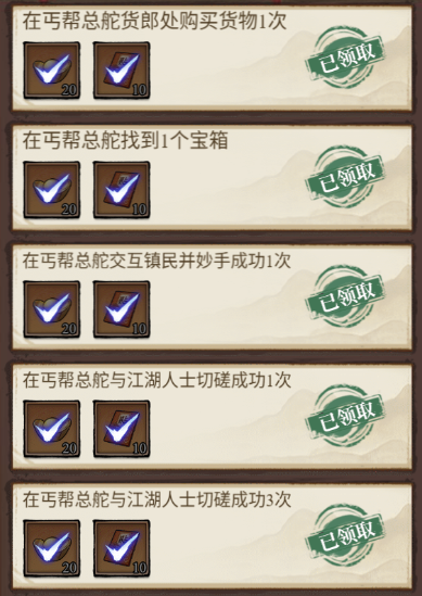 每天登录就是第一步需要做的任务啦!在【江湖之路】,除了【探索度】以外,从防具到升级经验再到高级侠客令,每天登录都可以获取不同的道具福利!