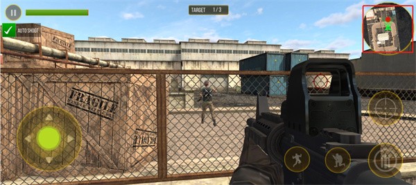 8、射击按钮旁边还有两个按钮,一个是跳跃,另一个是下蹲,跳跃可以帮助玩家越过一些障碍,当发现敌人可以点击下蹲来靠近;
