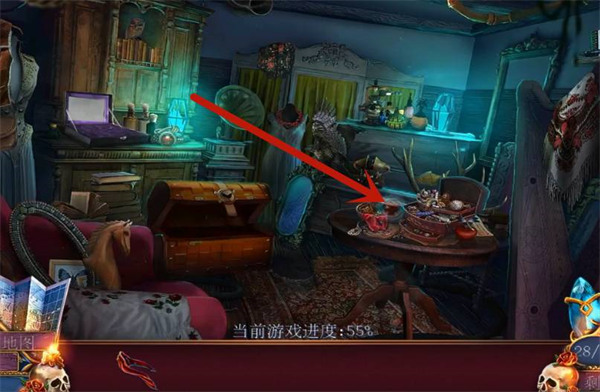 2、玩家要找到红缎带,就能解开谜题,缎带在桌子上的首饰盒里,打开首饰盒,拿开首饰就可以看见红缎带了。