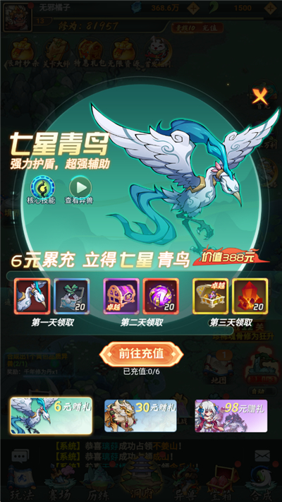 4、强力异兽直接送,山海世界陪你闯,还有海量养成道具拿到手软。