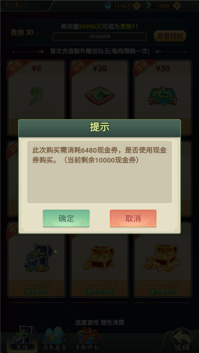 3、返回界面点击任意礼包或充值,弹窗显示使用代金卷确认;