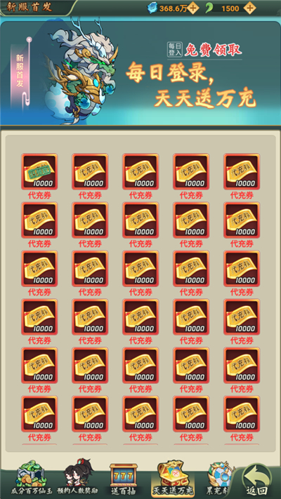 1、点击界面上方的首发福利中的天天送万充即可领取代金卷;
