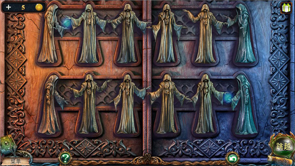 18、点开塔楼大门,放入8个和尚雕塑,调换和尚雕塑使他们的手形成能量链(如下图),完成后大门打开。
