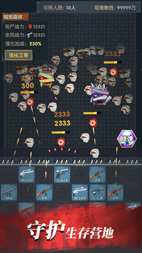时刻关注食物需求与人口消耗。每月首周将迎来血月攻击,僵尸军团会大举入侵,必须时刻戒备,抵御危机才能守住家园。
