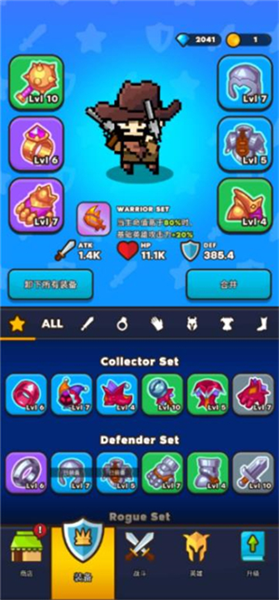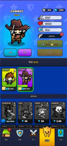 6.当通过第5章后会解锁英雄和装备,点击英雄可以更换你的角色。