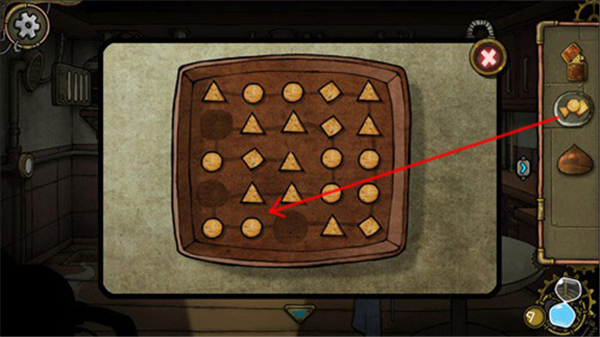 15、点击道具栏中刚刚获得的曲奇饼碎片,再点击曲奇饼盘,就可以放进去。