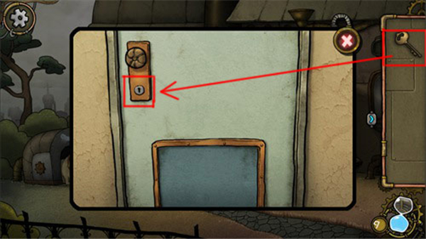 3、然后点击道具栏中的钥匙,再点击大门锁,就能打开大门。