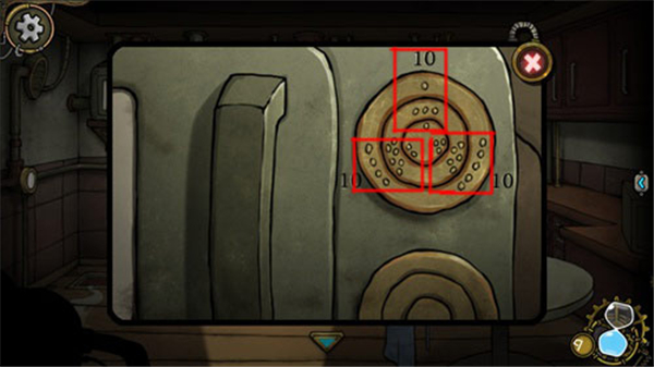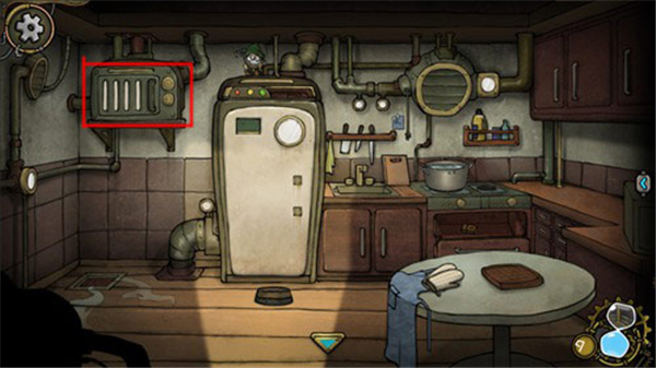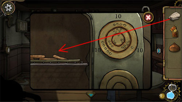 11、烤炉要密码才能打开,我们看烤炉上的转盘,当选装转盘让每一组小点加起来都等于 10 即可打开烤炉。