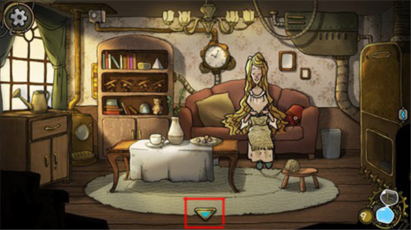 6、在客厅会跟母亲有一些剧情故事,然后母亲让我们把做好的曲奇饼拿到楼上给妹妹,所以我们点击屏幕下面的返回按钮,回到大厅。